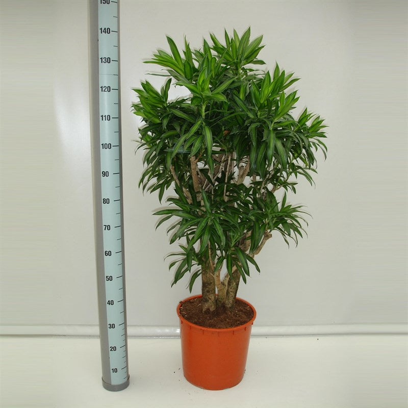 Vibrant Green Foliage: The Song of Jamaica features bold, dark green leaves arranged in a symmetrical, spiral pattern along its stems. Its lush and dense foliage makes it a visually appealing centerpiece in any indoor garden.