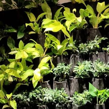 - Non-Woven Fabric Pockets: The green wall is constructed using high-quality fabric pockets that securely hold plants while allowing for proper air circulation and drainage.